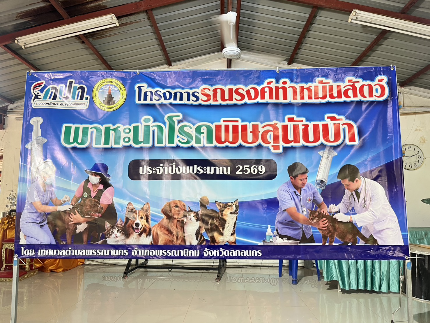 28 เมษายน 2569 : เทศบาลตำบลพรรณานคร ร่วมกับปศุสัตว์จังหวัดสกลนคร ปศุสัตว์อำเภอพรรณานิคม ดำเนินการโครงการรณรงค์ทำหมันสัตว์พาหะนำโรคพิษสุนัขบ้า ปีงบประมาณ 2569